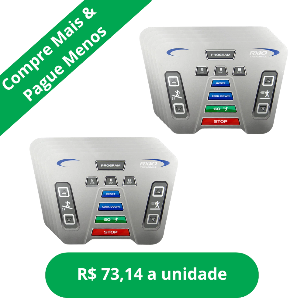 Adesivo de reposição fabricado com circuito flexível (parte eletrônica) com exatos 25 cm de largura x 17 cm de altura. Esse produto se aplica no modelo: Esteira Rx10 Treadmill Vel 9/11/13 fabricante Treadmill .