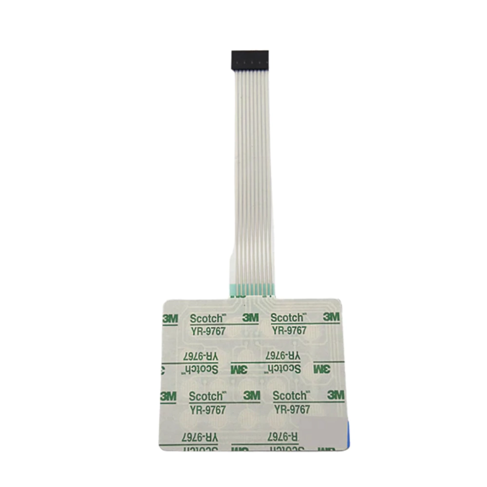 Adesivo de reposição fabricado com circuito flexível (parte eletrônica) com exatos 10,7 cm de largura x 8,5 cm de altura. Esse produto se aplica no modelo : Bomba Daruma 18 Teclas.