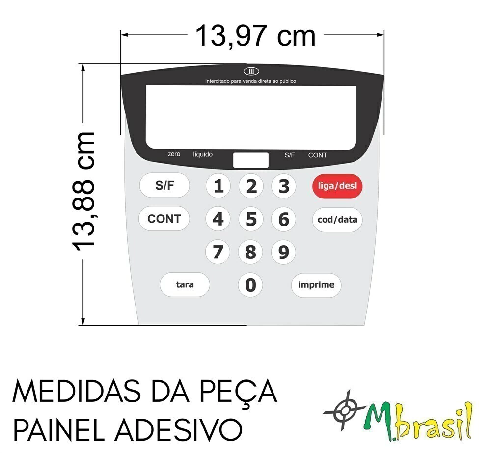 Adesivo de reposição fabricado sem circuito flexível (parte eletrônica) com exatos 13,97 cm de largura x 13,88 cm de altura.