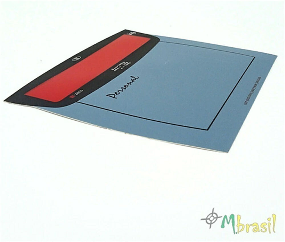 Adesivo de reposição fabricado sem circuito flexível (parte eletrônica) com exatos 13,9 cm de largura x 13,8 cm de altura.