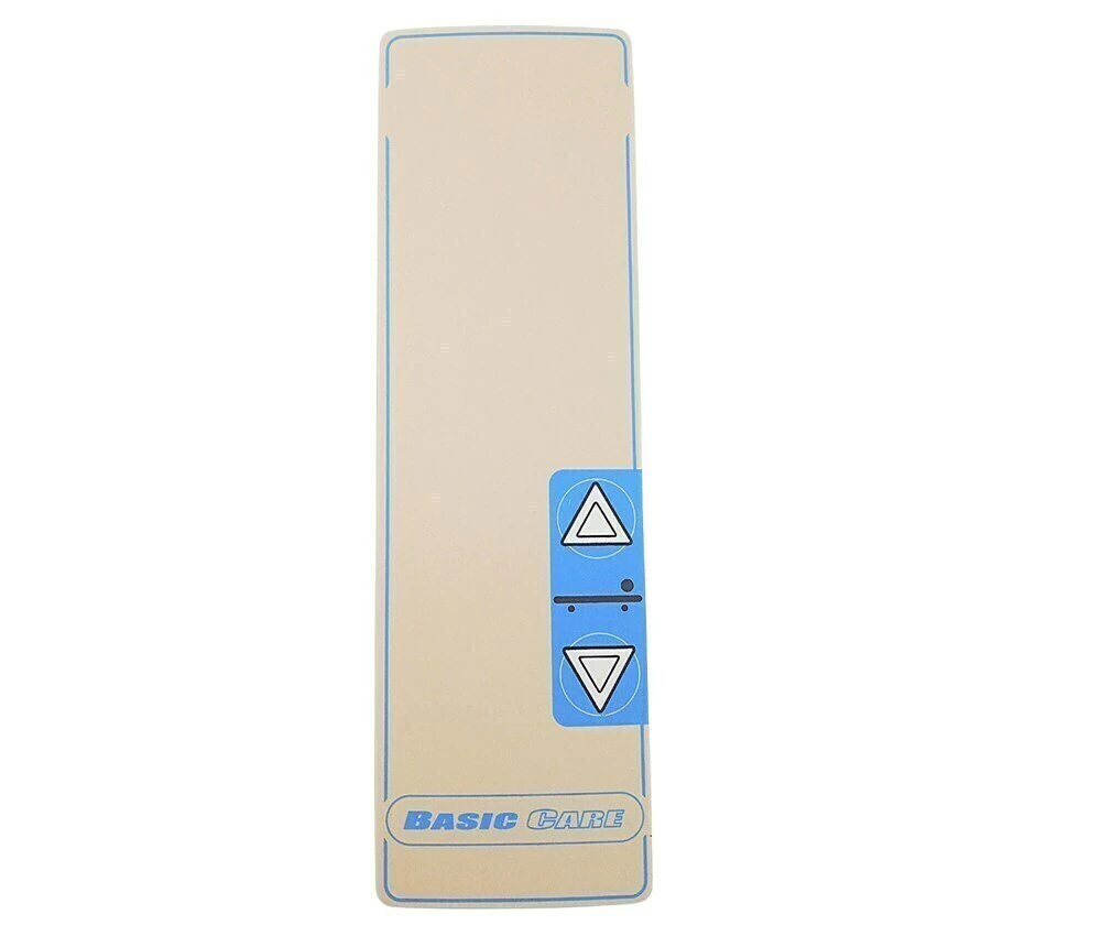 Adesivo de reposição fabricado sem circuito flexível (parte eletrônica) com exatos 5,4 cm de largura x 25 cm de altura. Esse produto se aplica no modelo: Hill Rom Hr 405 Basic Care 2 Botões Lado Direito fabricante: HILL ROM.