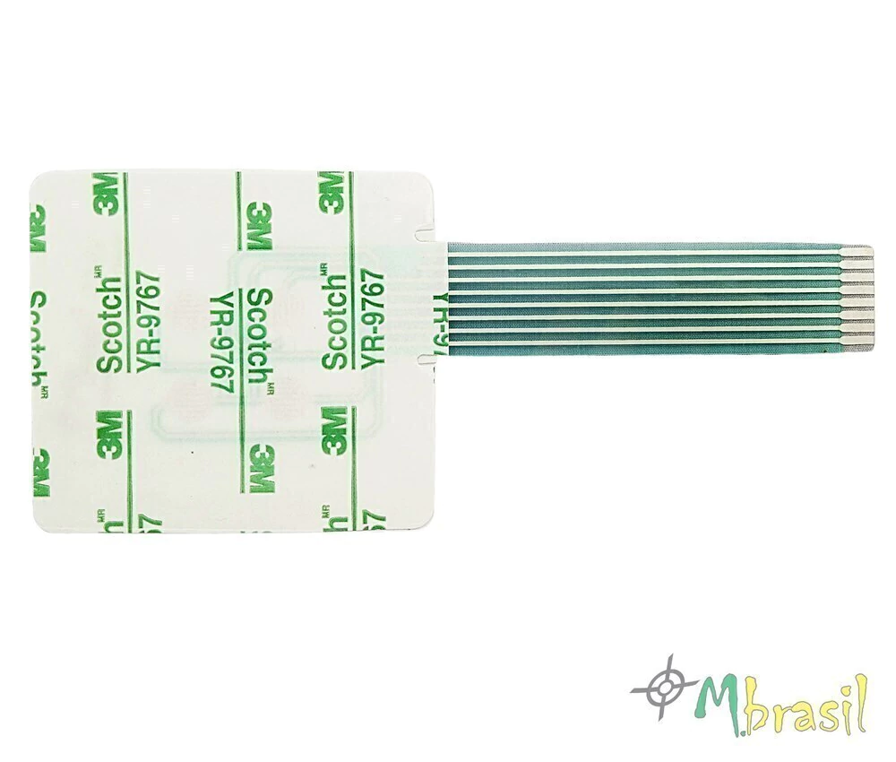 Adesivo de reposição fabricado sem circuito flexível (parte eletrônica) com exatos 7,9 cm de largura x 7,1 cm de altura.