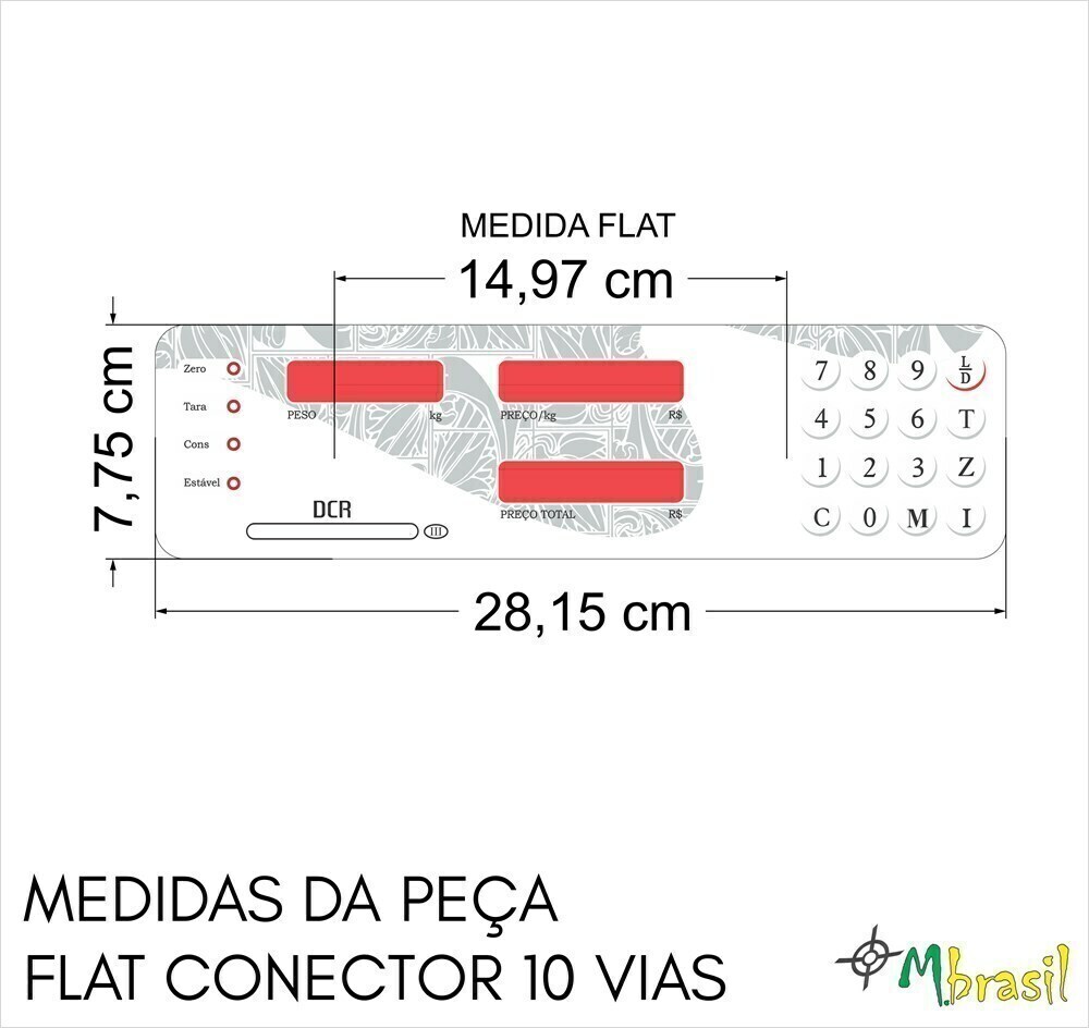Adesivo de reposição fabricado com circuito flexível (parte eletrônica) com exatos 28,15cm de largura x 7,75cm de altura.