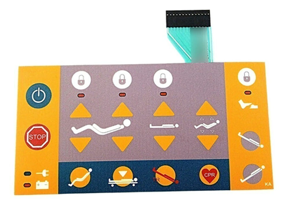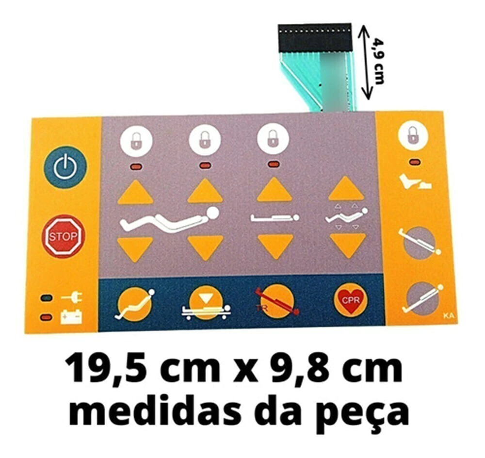Adesivo de reposição fabricado com circuito flexível (parte eletrônica) com exatos 19,5 cm de largura x 9,8 cm de altura. Esse produto se aplica no modelo: Cama Hospitalar Linet Eleganza Smart - fabricante: LINET.