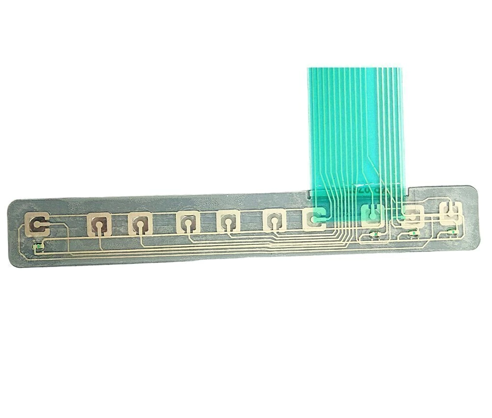 Adesivo de reposição fabricado com circuito flexível (parte eletrônica) com exatos 22,5 cm de largura x 3 cm de altura. Esse produto se aplica no modelo: Cama Hospitalar Stryker Fl 23 E fabricante: Stryker.