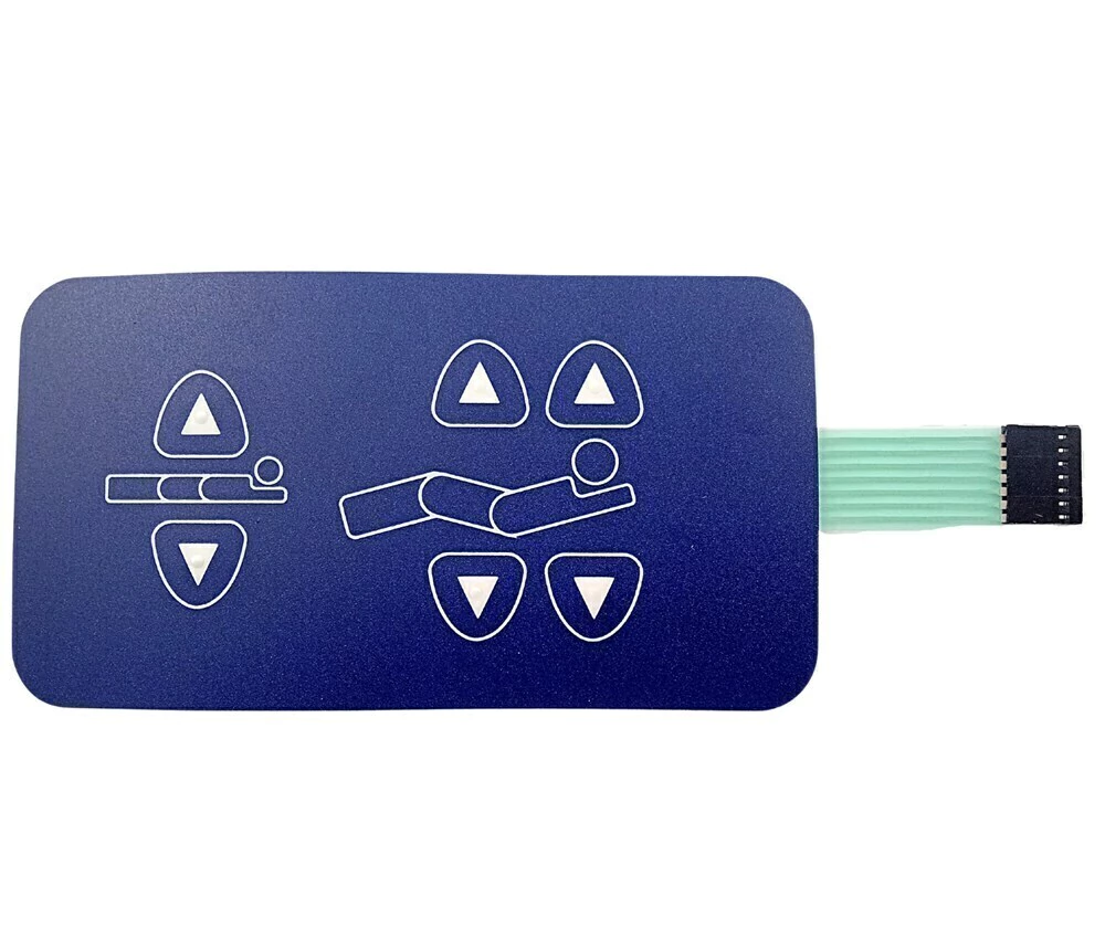 Adesivo de reposição fabricado com circuito flexível (parte eletrônica) com exatos 15,8 cm de largura x 8,5 cm de altura. Esse produto se aplica no modelo:Cama Stryker Gobed 2 Fl 28c / Externa Direita fabricante: Stryker.