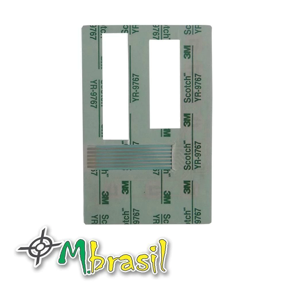 Adesivo de reposição fabricado com circuito flexível (parte eletrônica) com exatos 14,07cm de largura x 9,1cm de altura.