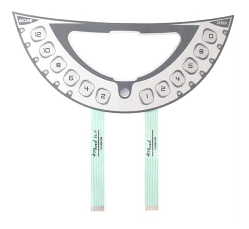 Adesivo de reposição fabricado com circuito flexível (parte eletrônica) com exatos 35 cm de largura x 16 cm de altura. Esse produto se aplica no modelo: Esteira Olympikus Tp 500.